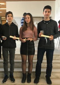 Πιο συγκεκριμένα οι μαθητές μας κέρδισαν δύο μετάλλια στην ομάδα μαθητών του Λυκείου και ένα μετάλλιο στην ομάδα μαθητών του Γυμνασίου. Αναλυτικά απέσπασαν: