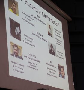 Στη συνέχεια μίλησε για τις σημαντικές διακρίσεις των μαθητών του Παραρτήματος στις Εθνικές Μαθηματικές Ολυμπιάδες και ανέφερε με χρονολογική σειρά τις διακρίσεις των τελευταίων ετών των παρακάτω μαθητών: