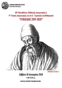 Η Διοικούσα Επιτροπή του Παραρτήματος Ν. Μαγνησίας της Ελληνικής Μαθηματικής Εταιρείας ανακοινώνει τη διεξαγωγή της Β΄ φάσης του 80ου Πανελλήνιου Μαθητικού Διαγωνισμού για τους επιτυχόντες μαθητές των τάξεων Β΄, Γ΄ Γυμνασίου και Α΄, Β΄ και Γ΄ Λυκείου και του 9ου Τοπικού Διαγωνισμού για τους επιτυχόντες μαθητές της Α΄ Γυμνασίου, στα Μαθηματικά, «Ο ΕΥΚΛΕΙΔΗΣ» που θα πραγματοποιηθεί το Σάββατο 18 Ιανουαρίου 2020 και ώρα 9.00 π.μ. στα εξεταστικά κέντρα της Α΄ φάσης.