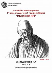 Υπενθυμίζεται ότι το ΣΑΒΒΑΤΟ 20 ΙΑΝΟΥΑΡΙΟΥ 2024 θα πραγματοποιηθεί η Β΄ φάση του 84ου Πανελλήνιου Μαθηματικού Διαγωνισμού ο «ΕΥΚΛΕΙΔΗΣ» για τους μαθητές των τάξεων Β΄, Γ΄ Γυμνασίου και Α΄, Β΄, Γ΄ Λυκείου.