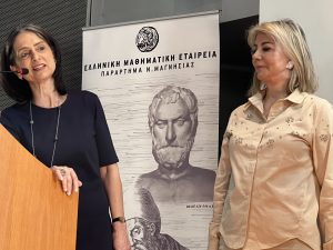 Με ιδιαίτερη επιτυχία πραγματοποιήθηκε την Κυριακή 14 Απριλίου 2024 η Τελετή Απονομής των Μεταλλίων, Αριστείων & Βραβείων των επιτυχόντων μαθητών/τριών για το σχολικό έτος 2023-2024 από την Ελληνική Μαθηματική Εταιρεία (Ε.Μ.Ε.)-Παράτημα Ν. Μαγνησίας. Η Τελετή Απονομής πραγματοποιήθηκε στο αμφιθέατρο του Τ.Ε.Ε. Μαγνησίας και την παρακολούθησε πλήθος κόσμου. Στην τελετή απονομής βραβεύθηκαν όλοι οι μαθητές/τριες που διακρίθηκαν στον 84ο Πανελλήνιο Μαθητικό Διαγωνισμό για τις τάξεις Β΄, Γ΄ Γυμνασίου και Α΄, Β΄, Γ΄ Λυκείου και στον 13ο Τοπικό Διαγωνισμό για την Α΄ Γυμνασίου. Την εκδήλωση προλόγισε η Πρόεδρος του Παραρτήματος κ. Στέλλα Α. Δημητρακοπούλου τονίζοντας τη σημασία της Μαθηματικής Επιστήμης σε όλες τις σύγχρονες επιστημονικές και τεχνολογικές εξελίξεις, όπως και την ιδιαίτερη σημασία της Αριστείας στη σύγχρονη εποχή. Επεσήμανε επίσης την ανοδική πορεία των διακρίσεων που αποσπούν οι μαθητές/τριες του Παραρτήματος της ΕΜΕ Μαγνησίας, συνολικά 17 μετάλλια Χάλκινα, Αργυρά και Χρυσό Μετάλλιο, όπως και Εύφημες Μνείες σε Μεσογειάδες και Διακρίσεις σε Βαλκανιάδες. Με τις διακρίσεις τους αυτές οι μαθητές/τριες τιμούν πρωτίστως τη Μαθηματική Επιστήμη, γεμίζοντας συγχρόνως χαρά και ηθική ικανοποίηση όλους όσους δραστηριοποιούνται στο Παράρτημα. Την εκδήλωση τίμησε με την παρουσία της η Υφυπουργός Παιδείας, Θρησκευμάτων και Αθλητισμού κ. Ζ. Μακρή, η οποία συνεχάρη τους μαθητές/τριες για την επίδοσή τους και επεσήμανε το ιδιαίτερα σημαντικό και αξιοσημείωτο ήθος τους, απονέμοντας στη συνέχεια Μετάλλια και Βραβεία. Επίσης την εκδήλωση τίμησε η Αντιδήμαρχος Παιδείας & Εκπαίδευσης Δήμου Βόλου κ. Γ. Μποντού-Τοκαλή η οποία συνεχάρη τους μαθητές/τριες και τους ευχήθηκε να έχουν πάντα επιτυχίες στην μαθηματική τους πορεία και κατόπιν τους απένειμε Βραβεία και Διακρίσεις.Την εκδήλωση τίμησαν επίσης οι Διευθυντές, Υποδιευθυντές και συνάδελφοι των σχολικών μονάδων του Ν. Μαγνησίας. Η Δ.Ε. του Παραρτήματος ευχαριστεί όλους όσους συνέβαλαν στην άψογη διεξαγωγή της εκδήλωσης.