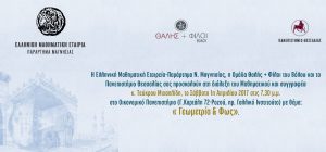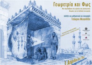 Το Σάββατο 1/4/2017 στο Αμφιθέατρο του Οικονομικού Πανεπιστημίου Βόλου (πρ. Γαλλικό Ινστιτούτο) δόθηκε η διάλεξη του Τεύκρου Μιχαηλίδη με θέμα” ΓΕΩΜΕΤΡΙΑ & ΦΩΣ”. Πλήθος κόσμου συνέρρευσε για να παρακολουθήσει τον ομιλητή που με γλαφυρό τρόπο μας ανέλυσε τις θεωρίες του φωτός από την αρχαιότητα μέχρι τις μέρες μας δίνοντας του το έναυσμα για τη συγγραφή του βιβλίου του “Σφαιρικά Κάτοπτρα-Επίπεδοι Φόνοι”. Η εκδήλωση πραγματοποιηθήκε σε συνεργασία με την ομάδα “ΘΑΛΗΣ+ΦΙΛΟΙ” του Βόλου και το Πανεπιστήμιο Θεσσαλίας. Φωτό από την εκδήλωση μπορείτε να δείτε ΕΔΩ.