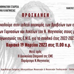 «Διεξαγωγή 17ου Μαθητικού Διαγωνισμού «Παιχνίδι και Μαθηματικά» για τους μαθητές της Ε΄ και ΣΤ΄ τάξης του Δημοτικού Σχολείου» Στα πλαίσια της διεξαγωγής του 17ου Μαθητικού Διαγωνισμού «Παιχνίδι και Μαθηματικά» για τους μαθητές της Ε΄ και ΣΤ΄ τάξης του Δημοτικού Σχολείου που θα διεξαχθεί την Παρασκευή 31 Μαρτίου 2023, κατά τις δυο πρώτες διδακτικές ώρες 8.15 […]